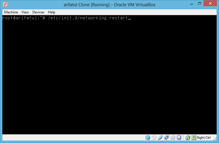 merestart dengan sintaks ‘/etc/init.d/networking restart’.