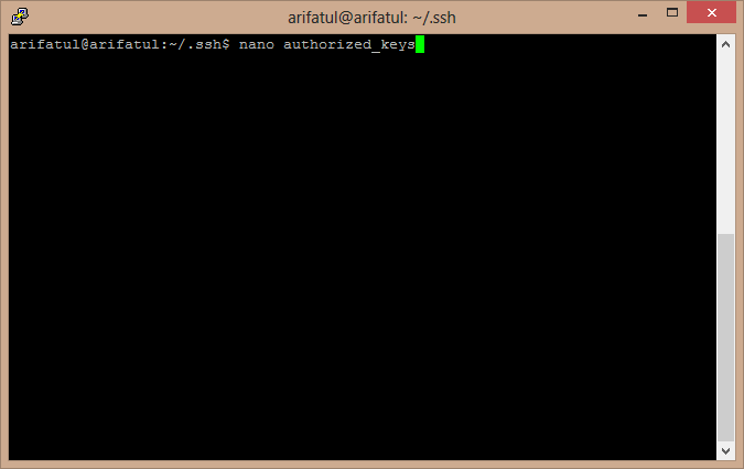 code yang kita copy di puttygen tadi. Lalu tekan ctrl+x dan y kemudian enter.