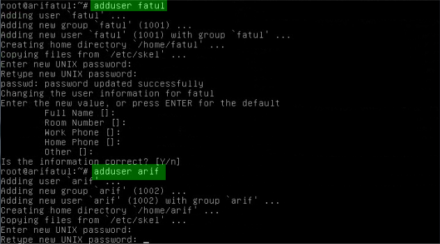 5. Kemudian buat dua user yang nantinya akan kita gunakan untuk login pada ftp. Buat saja user SMK dan TKJ. atau anda bisa membuat user lain.