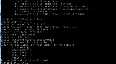 11. Buat user yang akan digunakan untuk login FTP nya dengan sintaks ‘adduser (namauser)’.
