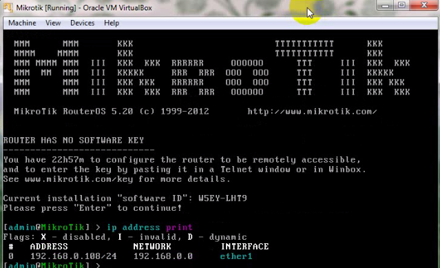 2. Cek IP yang sudah ada pada Konfigurasi Dasar dengan sintaks ip address print