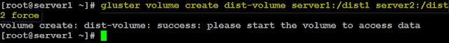 gluster volume create dist-volume server1:/dist1 server2:/dist2 force