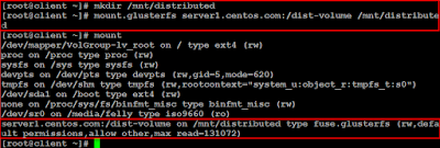 mount.glusterfs server1.centos.com:/dist-volume /mnt/distributed