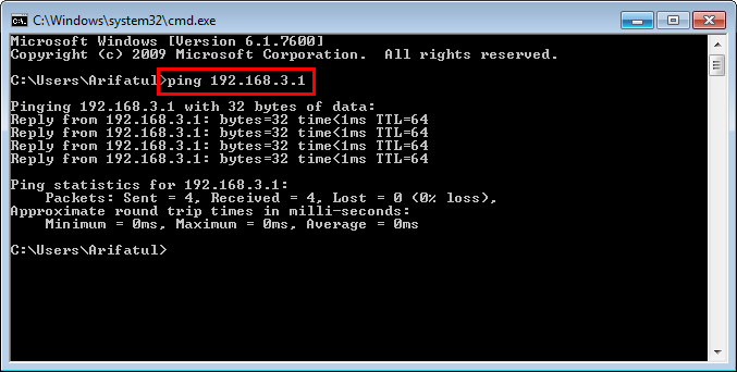 3. Open CMD, test conection by pingng mikrotik.