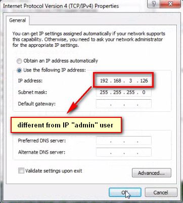 7. change IP on your laptop/PC. create a different IP with user "admin"