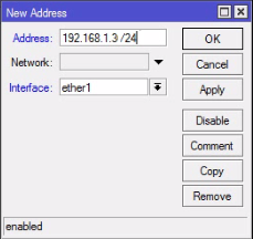 1. First step, setting IP on mikrotik. Enter to IP => Address menu.