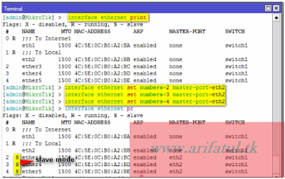 5. Kemudian kita coba untuk menonaktifkankan ether3,ether4 dan ether5 dengan cara: