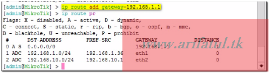 ip firewall nat add action=masquerade chain=srcnat out-interface=eth1
