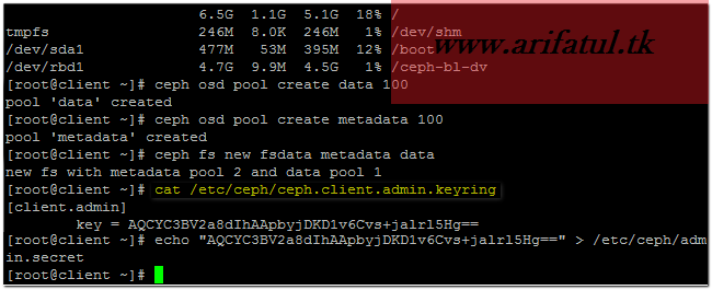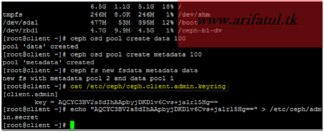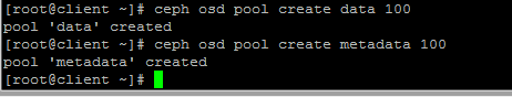 1. Buatlah pool pada Ceph OSD dengan caraceph osd pool create data 100ceph osd pool create metadata 100