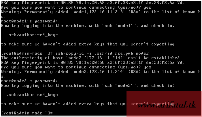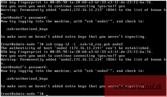 ssh-copy-id -i .ssh/id_rsa.pub node1ssh-copy-id -i .ssh/id_rsa.pub node2ssh-copy-id -i .ssh/id_rsa.pub node3ssh-copy-id -i .ssh/id_rsa.pub client