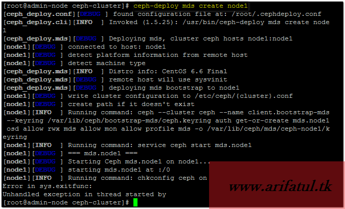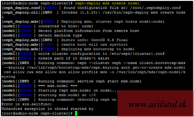ceph-deploy mds create node12. kemudian cek HEALT ceph pada Admin-node