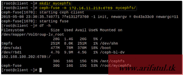 mkdir mycephfsceph-fuse -m 172.16.11.213:6789 mycephfs/