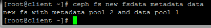 2. Kemudian buat filesystem ceph dari pool yang sudah dibuat tadi dengan cara