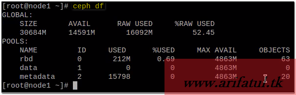 2. Kemudian buat filesystem ceph dari pool yang sudah dibuat tadi dengan cara